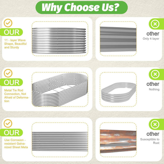 SnugNiture Galvanized Steel Raised Garden Bed, 6x2x2 ft, Outdoor Oval Deep Root Planter Box for Growing Vegetables, Flowers and Fruits