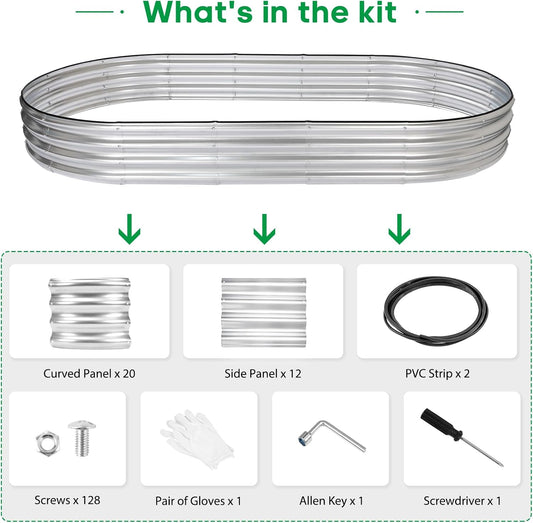Land Guard Galvanized Metal Raised Garden Bed Kit, 8x4x1.5ft Large Planter Boxes Outdoor, Oval Gardening Box, Patio Garden Planter Box for Vegetables (Silver)