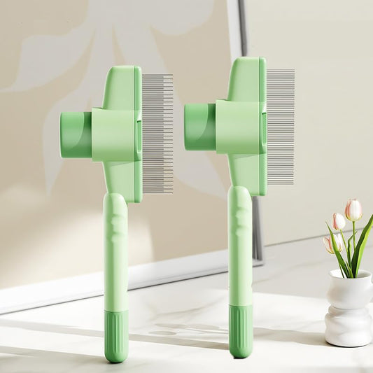2-Pack Pet Hair Removal Comb & Flea Comb with Release Button for Cats & Dogs - Grooming Brush for Short/Long Hair Green & Yellow