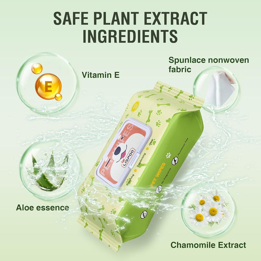 Pet Wipes -Cleaning and Grooming for All Pets, Alcohol-Free Portable Pack, Gentle for Face, Body, Paws and Butt-Thick Nonwoven Fabric-80 Count