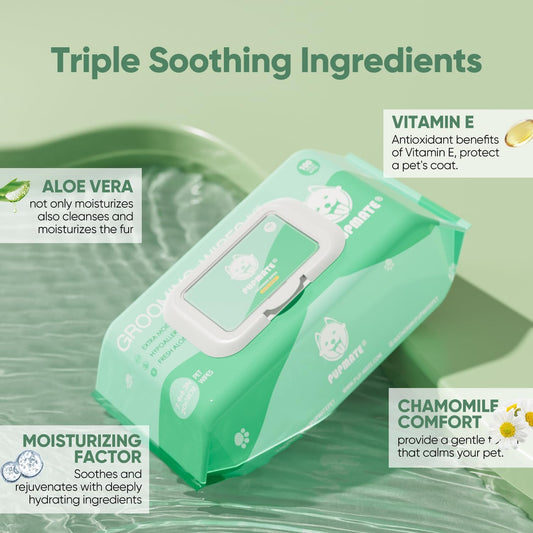 Natural Pet Grooming Wipes, 100 Fresh Counts, Extra Moist & Thick for Dogs & Cats, Puppies & Kittens