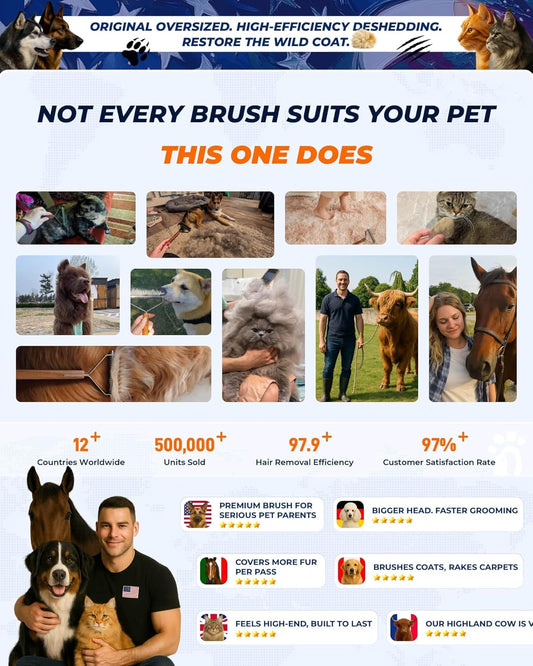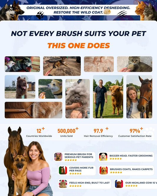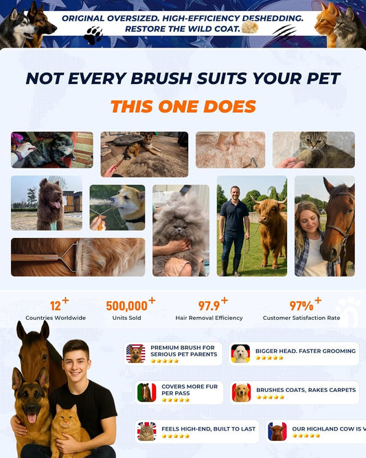 Large Dual-Sided Dogs and Cats Brush for Shedding, Unique Blade Designed Deshedding Dog Brush for Long & Short Haired Dogs, Safe&Pro Shedding Tools, Undercoat Rake for All Coats, Premium Walnut Handle