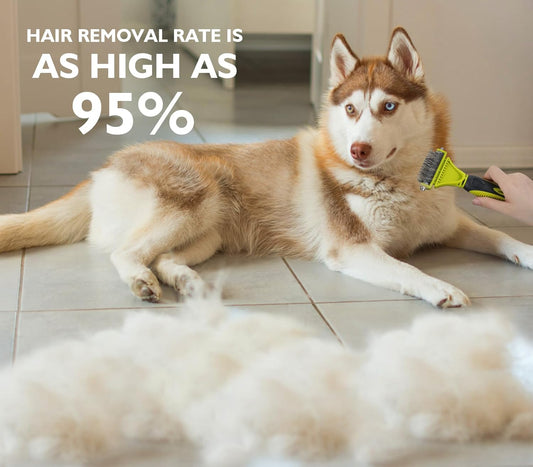Undercoat Rake for Dogs & Cats, Dematting Comb with Extra Wide Double-Sided Stainless Steel Teeth for Detangling, Deshedding, Brushing, Thinning & Removing Shed Fur, Knots, Mats, and Tangles in Pets
