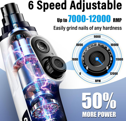 Casfuy 6-Speed Dog Nail Grinder - Newest Enhanced Pet Nail Grinder Super Quiet Rechargeable Electric Dog Nail Trimmer Painless Paws Grooming & Smoothing Tool for Large Medium Small Dogs (Blue)