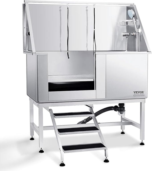 VEVOR 50" Pet Dog Bathing Station w/Stairs, Professional Stainless Steel Dog Grooming Tub w/Soap Box, Faucet,Rich Accessory, Dog Bathtub for Large,Medium,Small Pets, Washing Sink for Home Left