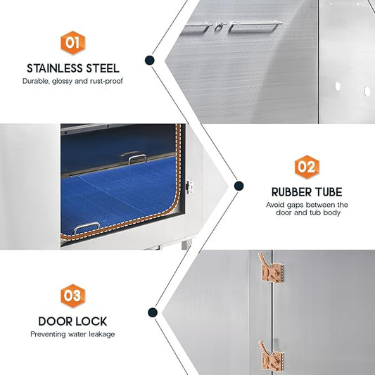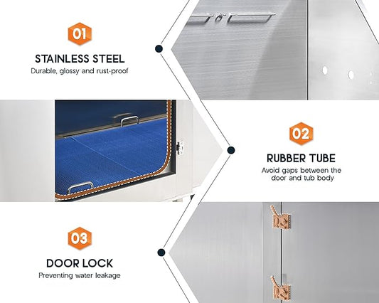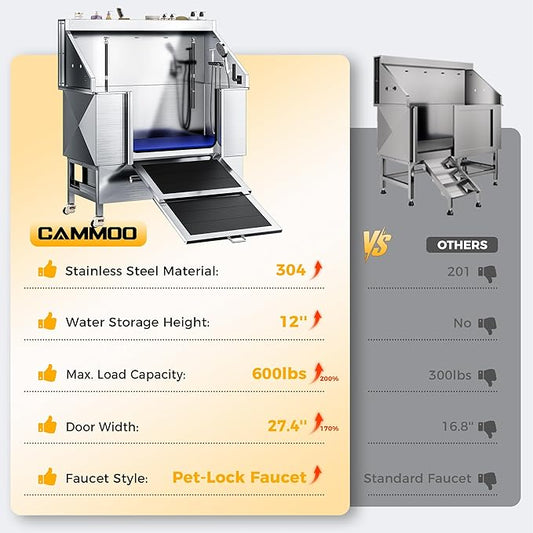 Albott 50 Inch Stainless Steel Dog Washing Station with Non-Slip Steps, Sprayer, Faucet, Soap Box – Professional Pet Bathtub for Small and Medium Pets, Use at Home, Garage, or Grooming (Right Door)