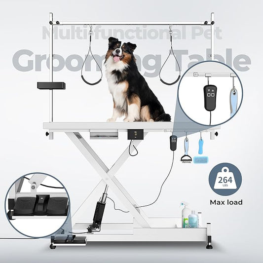 Heavy Duty Electric Lifting Pet Dog Grooming Table for Large Dogs with Overhead Arm, Anti-Skid Rubber Desktop and Powerful Motor, 50'' / White