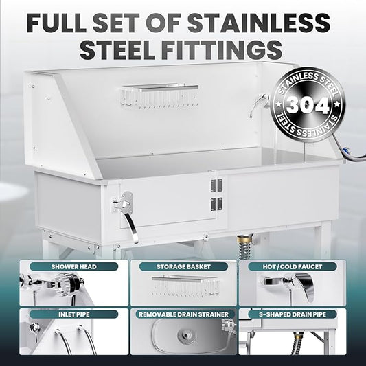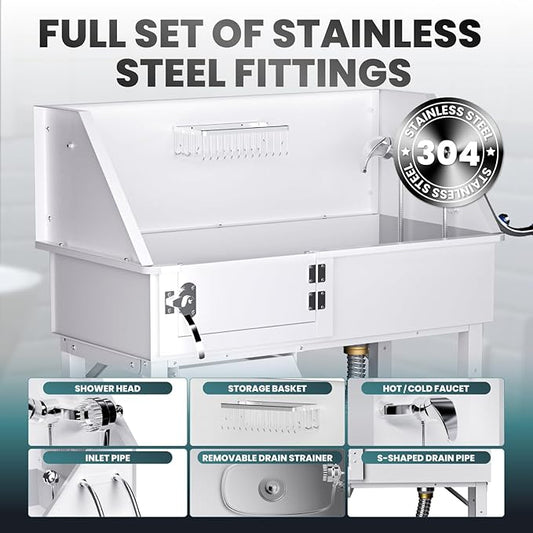 50" Dog Bathing Station for Large Dogs, Stainless Steel Dog Pet Washing Station, Professional Dog Grooming Tub, Pet Wash Bath Station (50" Left Door)