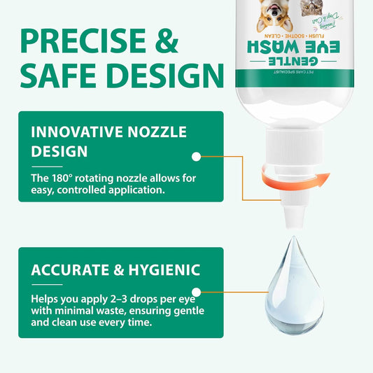 Pet Eye Drops for Dogs & Cats - Gentle Cat Eye Drops for Itchy, Watery Eyes - Safe Eye Wash Solution for Puppies & Kittens - 3.38 oz