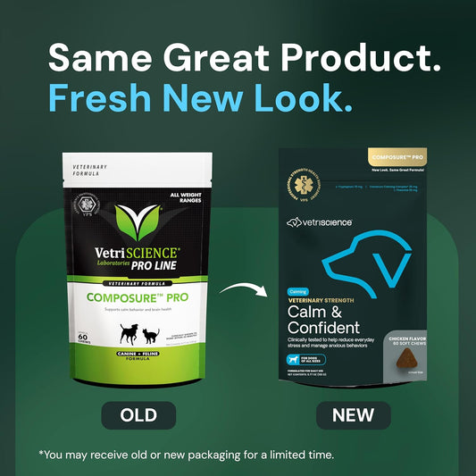 VetriScience Veterinary Strength Calm & Confident Chews - Stress Supplement for Pets - Supports Brain Function for Cats & Dogs - with L-Theanine, Thiamine & More - 60 Count
