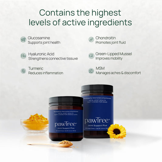 pawTree Joint & Hip Support Supplement for Dogs with Glucosamine, Chondroitin, MSM, Tumeric & Green Lipped Mussels - Vitamins, Supplements & Health Essentials - All-Natural Mobility Soft Chews
