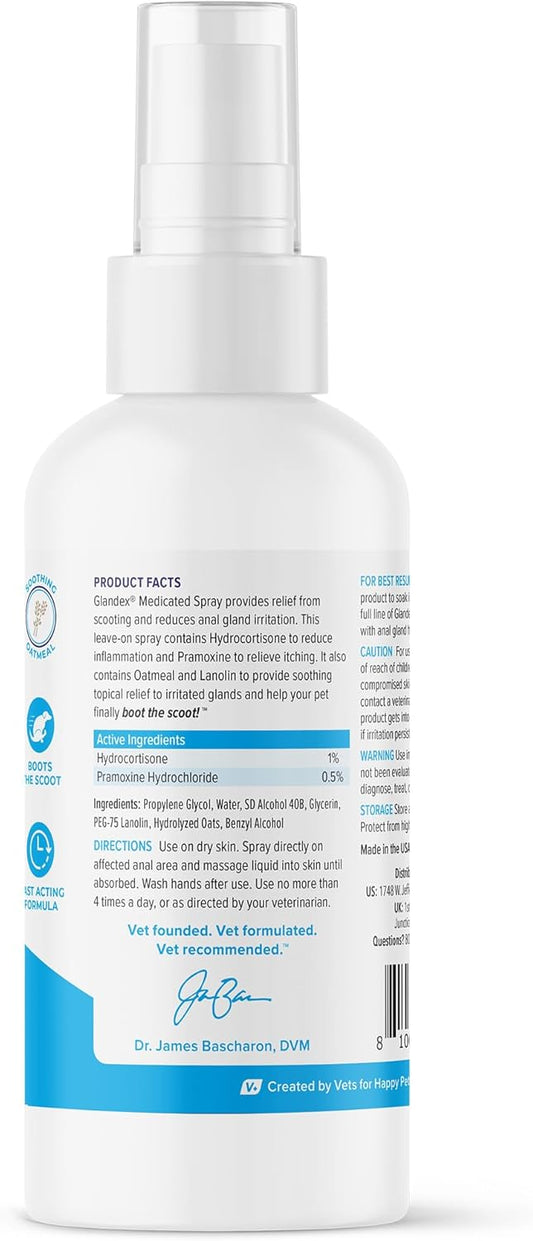 Vetnique Glandex Medicated Dog Butt Wipes or Spray for Dog Scooting - Topical Anti Itch Skin Relief for Soothing Inflamed Anal Glands in Dogs & Cats - Fast Acting Formula (4oz Spray)