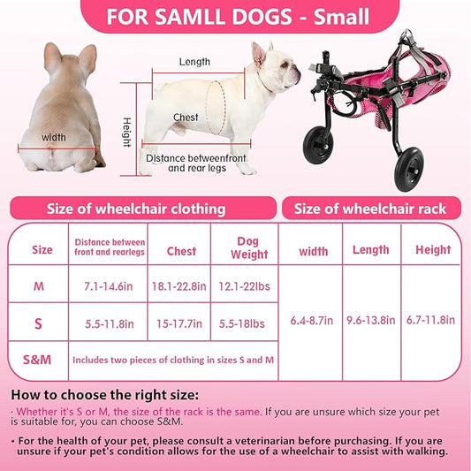 Updated Dog Wheelchair for Back Legs,Small Dog Wheelchair Carts with Wheels, Light Weight Wheelchair for Leg Support Helps Senior,Injured,Paralyzed, S & Pink