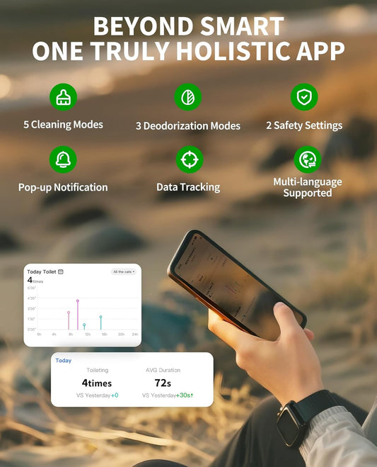 WARCAT Self Cleaning Litter Box Automatic, 90 L Automatic Cat Litter Box for Multiple Cats APP-Controlled with Smart Sensors, Safety Protection,Mat,1 Roll Garbage Bag (Brown)
