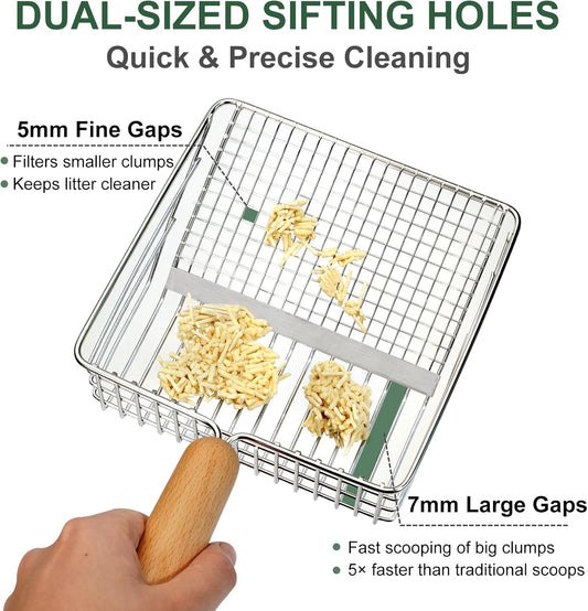 XBX Cat Litter Scoop with Holder, Heavy Duty Litter Sifter, Stainless Steel Litter Shovel, Litter Scooper with Beech Wood Grip and Washable Stand, Perfect for Cat Litter Box Cleaning