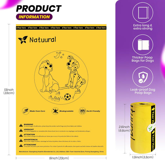 Dog Poop Bags-150 Counts with Holder (10 Rolls), Biodegradable Poop Bags, Eco-friendly and Easy to Open, Thick Dog Waste Bags (Yellow)