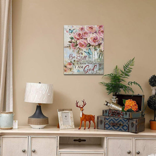 Farmhouse Rose Wall Art Christian Scripture Pictures Pink Rose Wall Decor Rustic Floral Butterfly Canvas Print Painting Artwork for Bathroom Living Room Bedroom 16"x20"