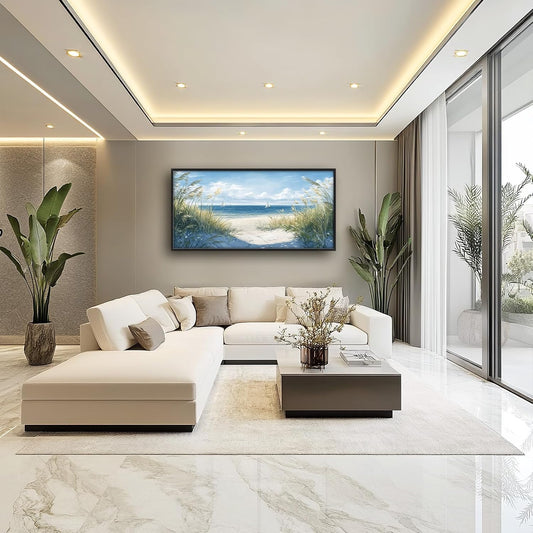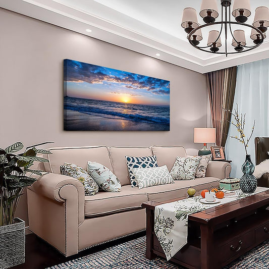 Lapremoly Framed Canvas Wall Art - Large Blue Ocean Beach Wall Painting for Living Room, Bedroom & Office - 24" x 48"