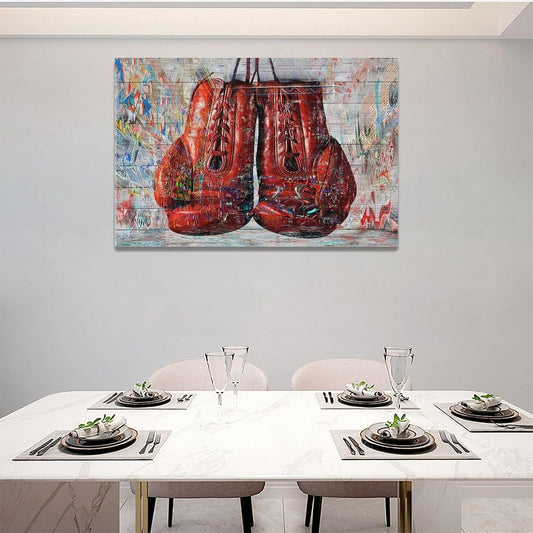 Quorin Banksy Graffiti Boxing Wall Art Red Boxing Gloves Pictures Gym Sport Wall Decor Canvas Print Painting Artwork for Gym Living Room Bedroom 12"x16"