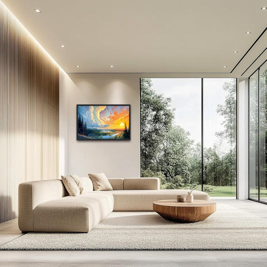 Framed Large Sunrise Wall Art for Living Room, Oversized Sunrise Wall Decor Forest Lake Landscape Canvas Print Natural Picture Home Decoration for Bedroom Living Room Office 36"x24"