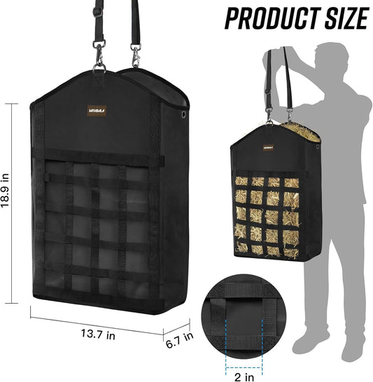 Hay Bag for Horses,Slow Feeder for Horse/Donkey/Goat, Premium 1680D Oxford Cloth,Easy to Fill and Hang with Extra Large Opening(Black)