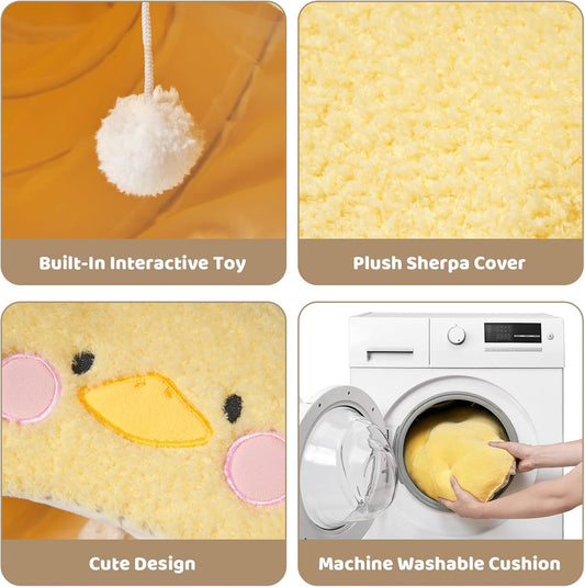 XxingSheep 4 Cave Shuttled XL Cat Tunnel Bed for Indoor Cats Peekaboo Toy Donut with Warm Mat