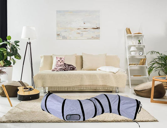 Tempcore 3-Way Collapsible Cat Tube Toys, Indoor Cat Tunnels with Peek Hole Toy Ball, Light Grey