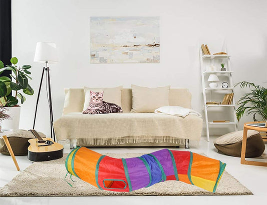 Tempcore Pet Cat Tunnel Tube Cat Toys 3 Way Collapsible, Cat Tunnels for Indoor Cats,Kitty Tunnel Bored Cat Pet Toys Peek Hole Toy Ball Cat, Puppy, Kitty, Kitten, Rabbit Rainbow