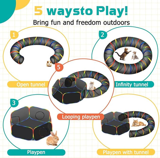 Collapsible Cat Play Tunnel + Cube with Three Ways for Indoor and Outdoor, Cat Enclosure, Tunnel and Tent Connection