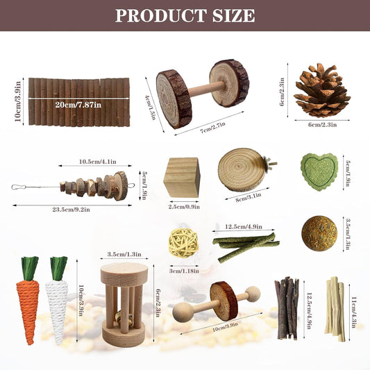 Hamster Toys Set,Guinea Pig Toys Small Animal Chewing Toy and Rat Cage Accessories, 16 Different,Hamster Small Animal Hideout ,Chinchillas, Gerbils, Rats, Rodents Teeth Care,Natural Molar Tools