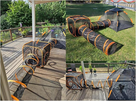 Outdoor Cat Enclosure - Portable Catio Playground for Cat Run, Kitty and Small Animals - Tent & Tunnels for Outside and Indoor Play