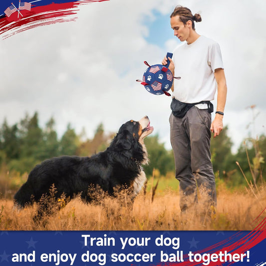QDAN Dog Toys, Soccer Ball with Straps, World Cup Interactive Toys for Tug of War, Puppy Birthday Gifts, Water Toy, Durable Dog Balls for Medium Large (8 Inch)