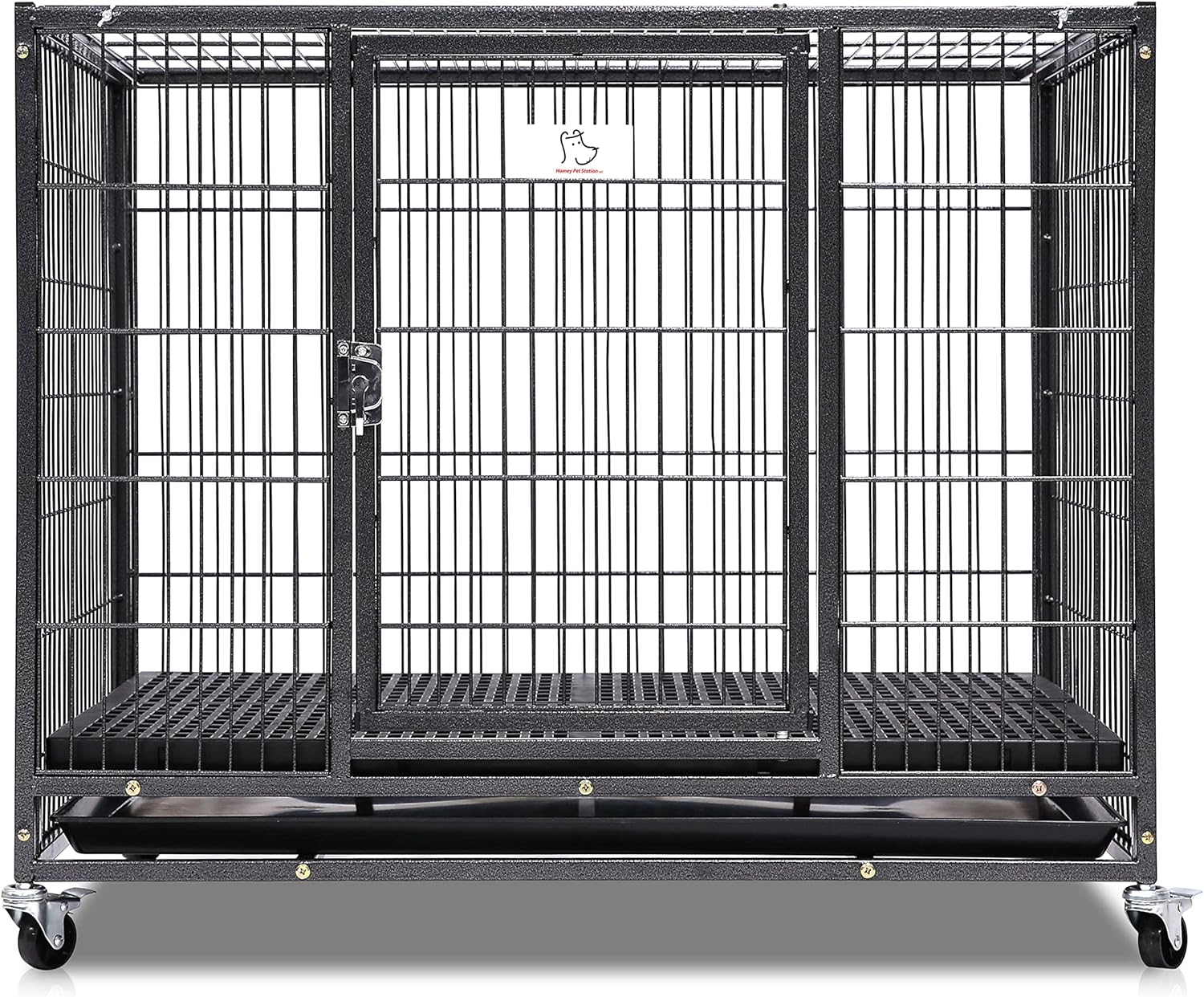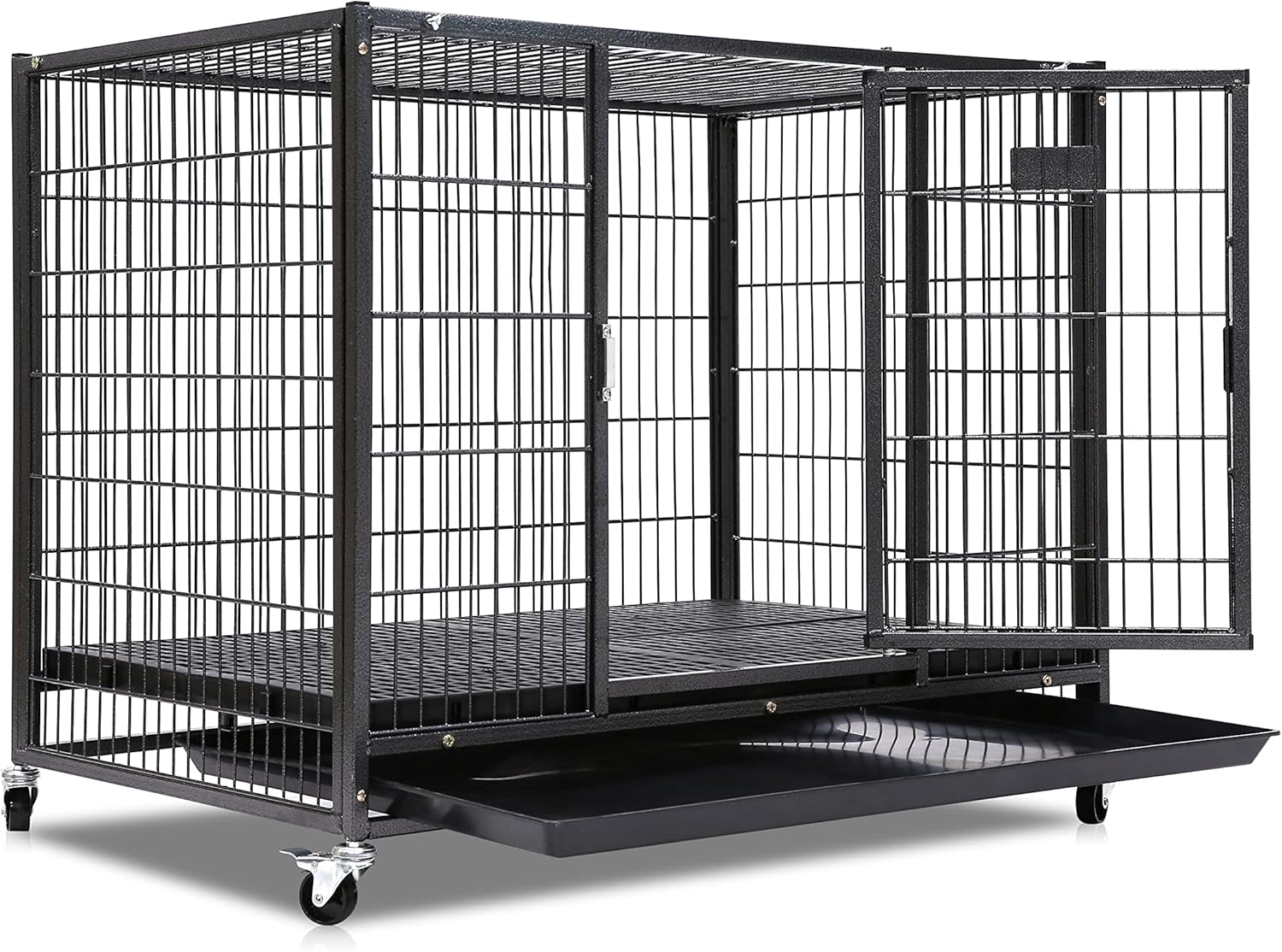 Homey Pet 37" Stackable Larger Heavy Duty Dog Cage w/Plastic Floor Grid, Open Top & Casters