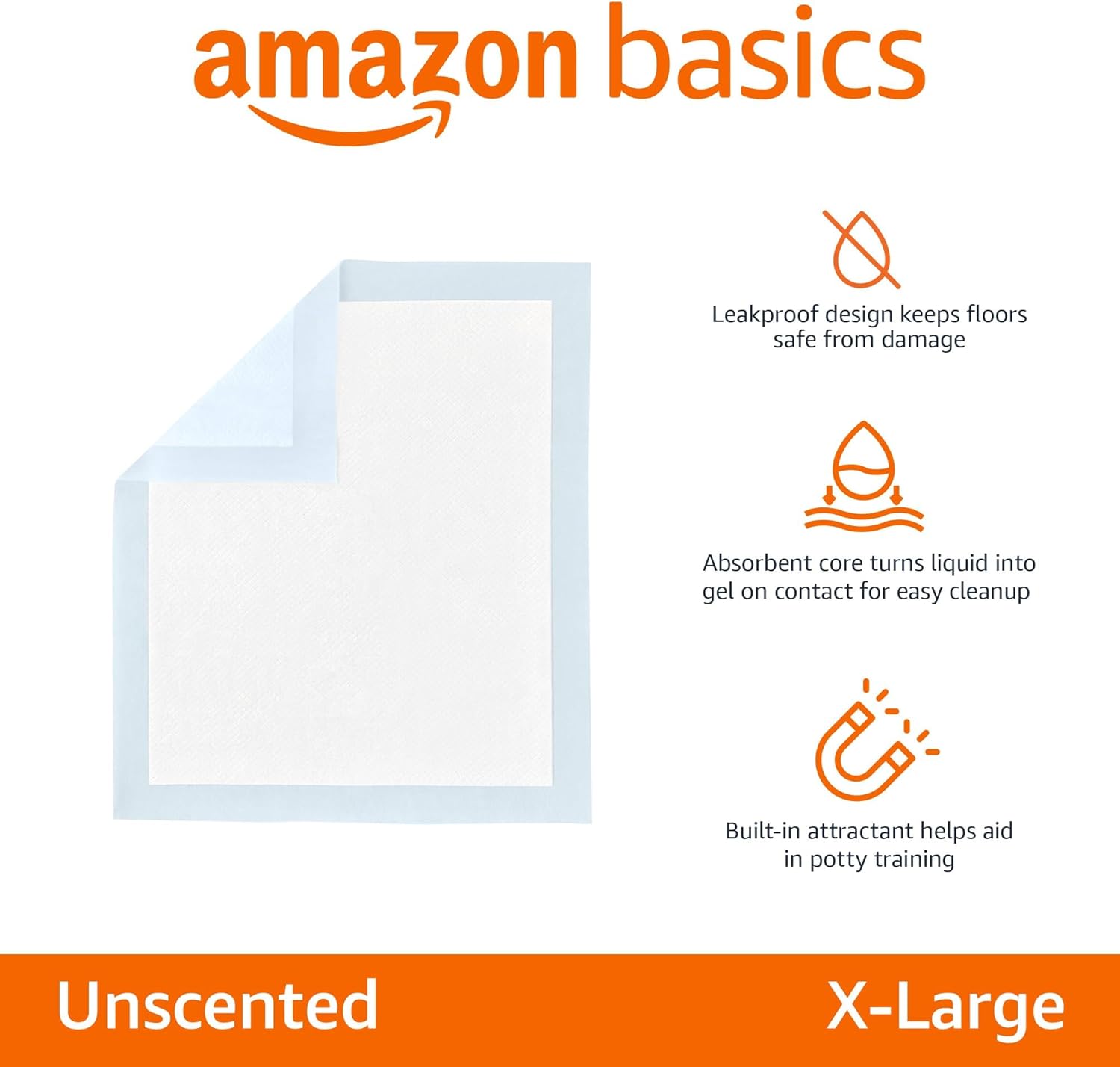 Amazon Basics Puppy Pads with Quick-Dry 5-Layer Leak-Proof Design for Potty Training, X-Large Size 28 x 34 Inch, Pack of 40, Blue & White