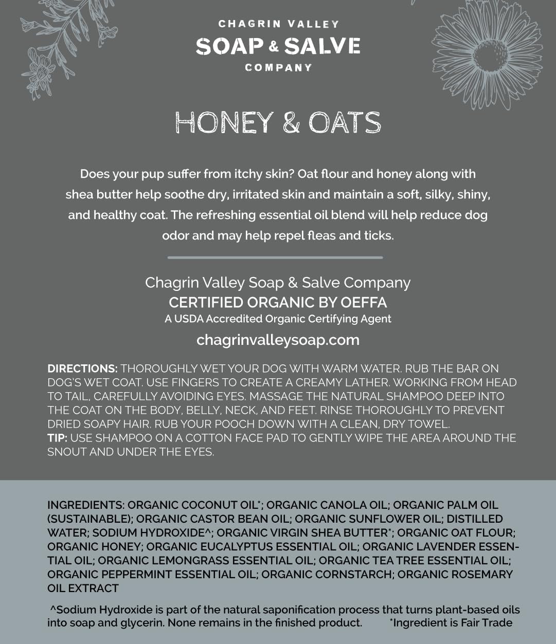 Chagrin Valley Soap & Salve Certified Organic Dog Shampoo and Conditioner – Dog Shampoo Itchy Skin Relief and Puppy Essentials - Natural Handmade Honey & Oats, 3.8 oz Bar Soap