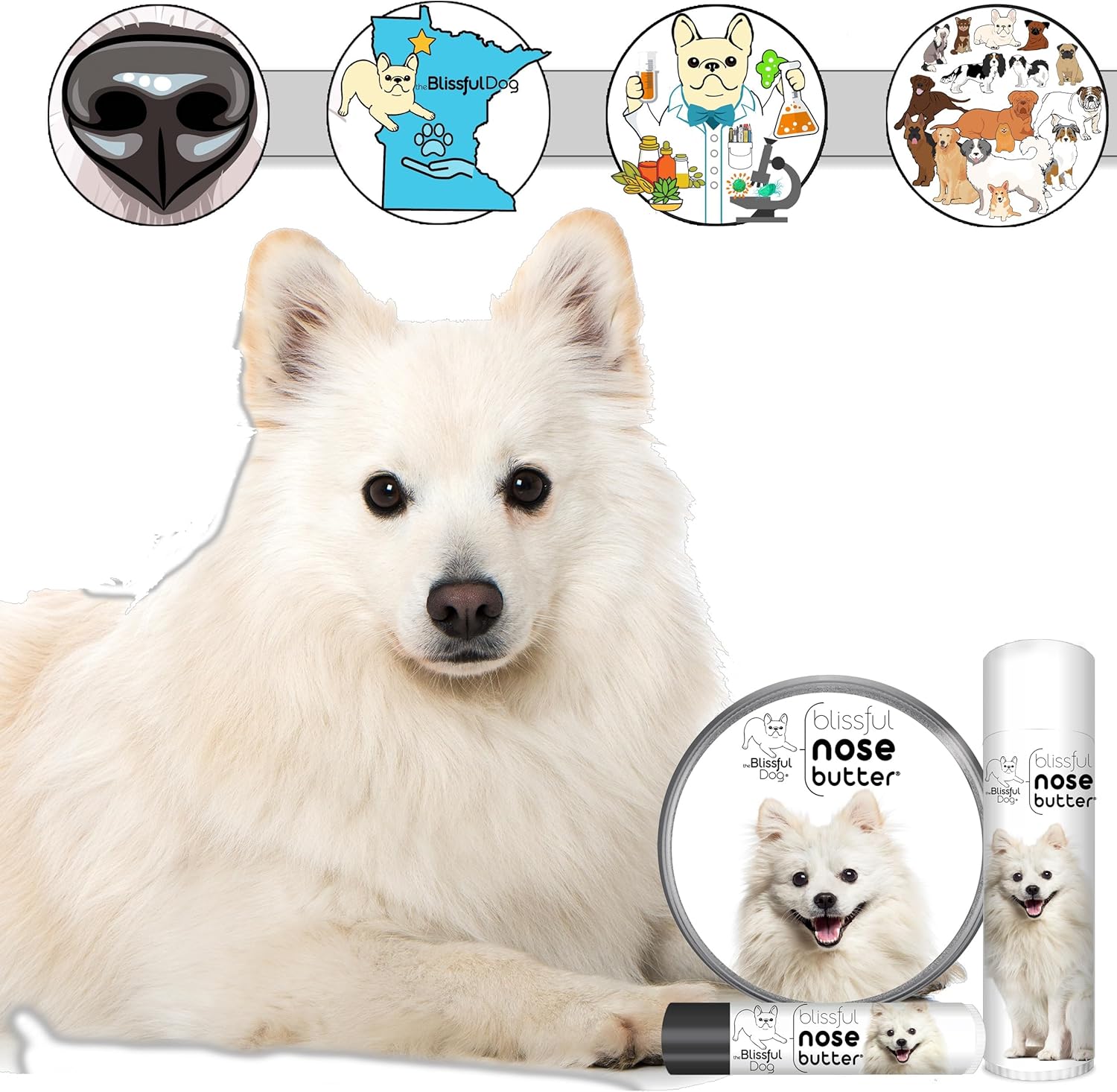 The Blissful Dog American Eskimo Nose Butter for Dry, Cracked Skin, Lick-Safe Dog Nose Balm with Moisturizing Shea Butter, Almond, Olive, and Essential Oils, Pet Supplies, Uncented, 2 oz.