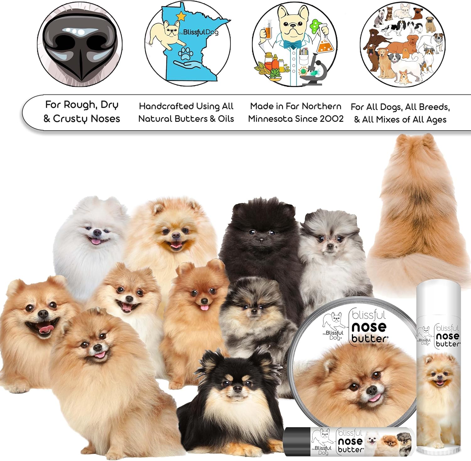 The Blissful Dog Pomeranian Nose Butter for Dry, Cracked Skin, Lick-Safe Dog Nose Balm with Moisturizing Shea Butter, Almond, Olive, and Essential Oils, Pet Supplies, Uncented, 0.50 oz.