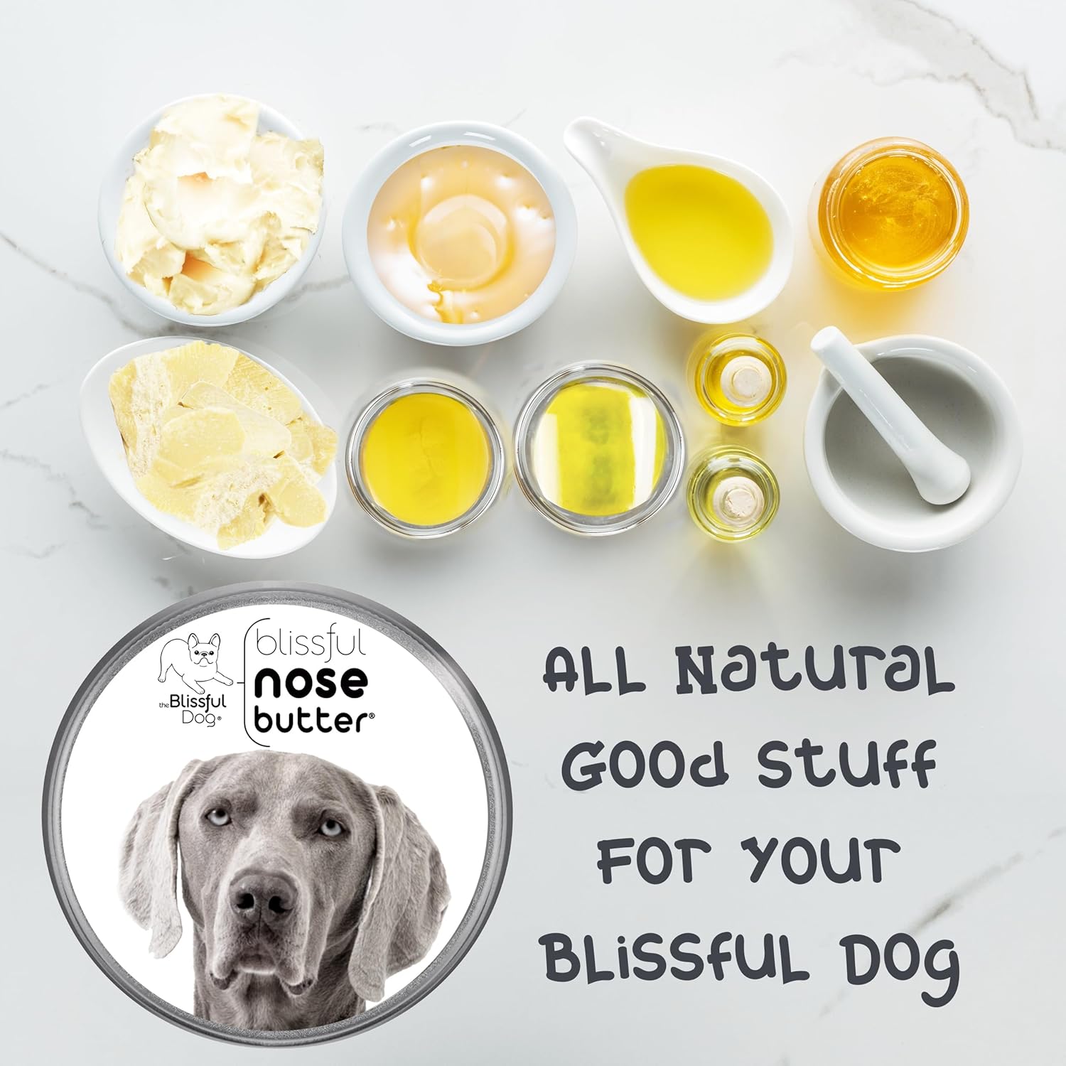 The Blissful Dog Weimaraner Nose Butter for Dry, Cracked Skin, Lick-Safe Dog Nose Balm with Moisturizing Shea Butter, Almond, Olive, and Essential Oils, Pet Supplies, Uncented, 1 oz.