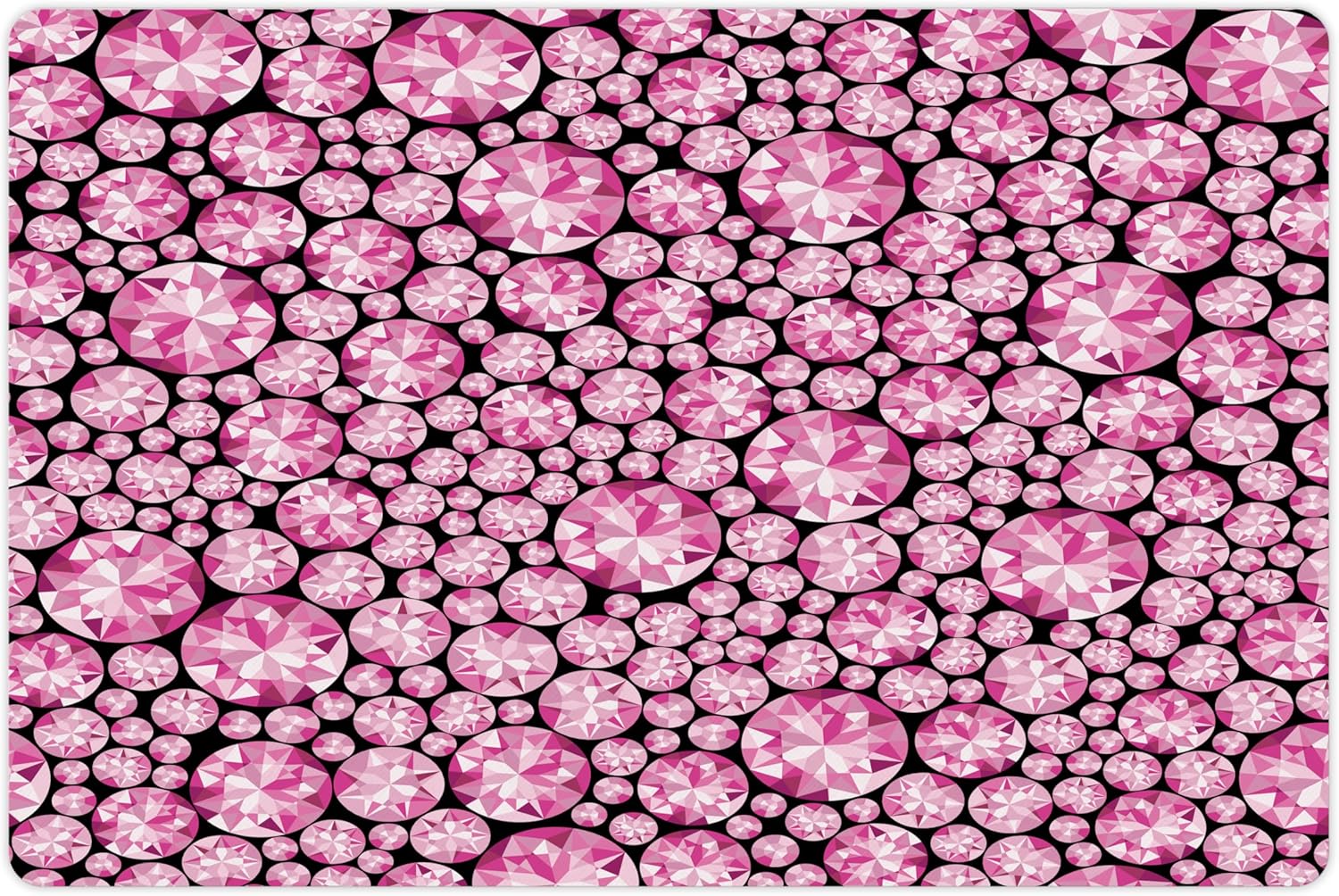 Lunarable Feminine Pet Mat for Food and Water, Big Vivid Diamond on The Dark Background Engagement and Wedding Themed Print, Non-Slip Rubber Mat for Dogs and Cats, 18" X 12", Pink