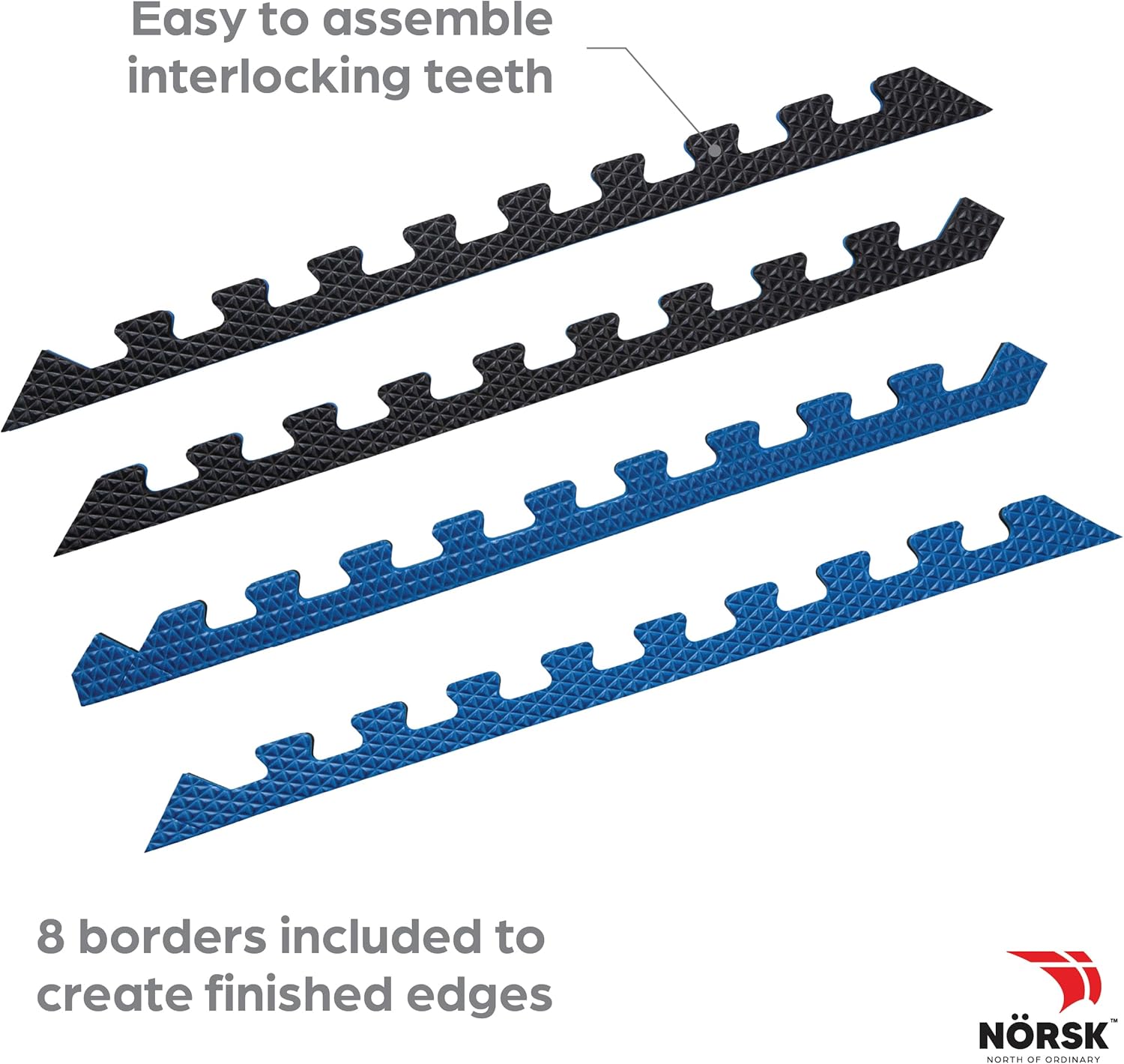 Norsk Reversible Exercise Mats 3/4" Thick EVA Interlocking Foam Tiles - Perfect for Home Gym Flooring, 28 Tiles & 56 Trim Pieces, 112 Sq. Ft. Reversible, Dazzling Blue/Black
