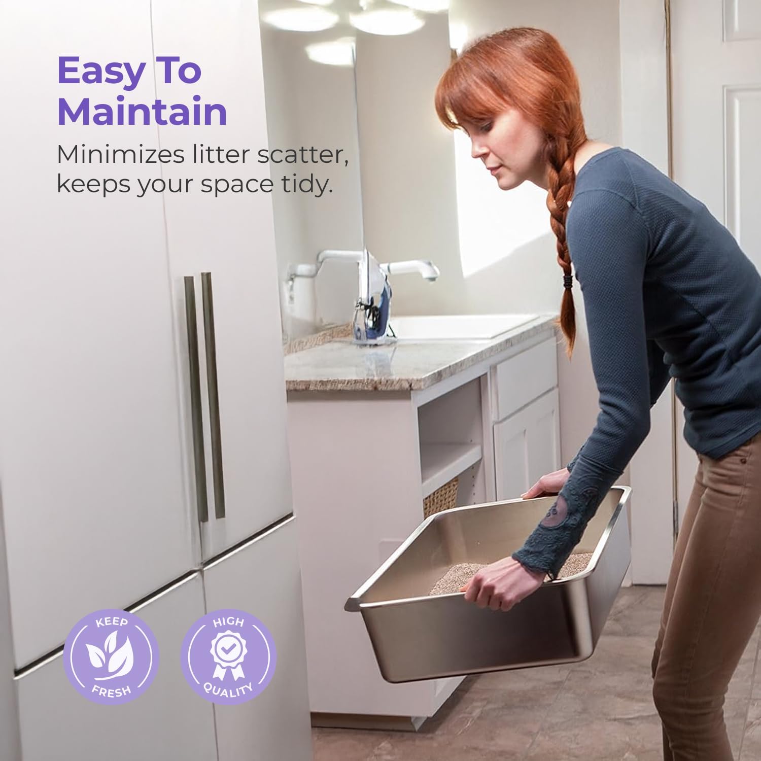iPrimio Stainless Steel Litter Box - No Stick Litter Pan for Cats - XL Cat Box with Teflon Coating - Never Absorbs Odor or Rust - Ergonomic, Easy to Clean, Durable, Nonstick, Spacious Pans