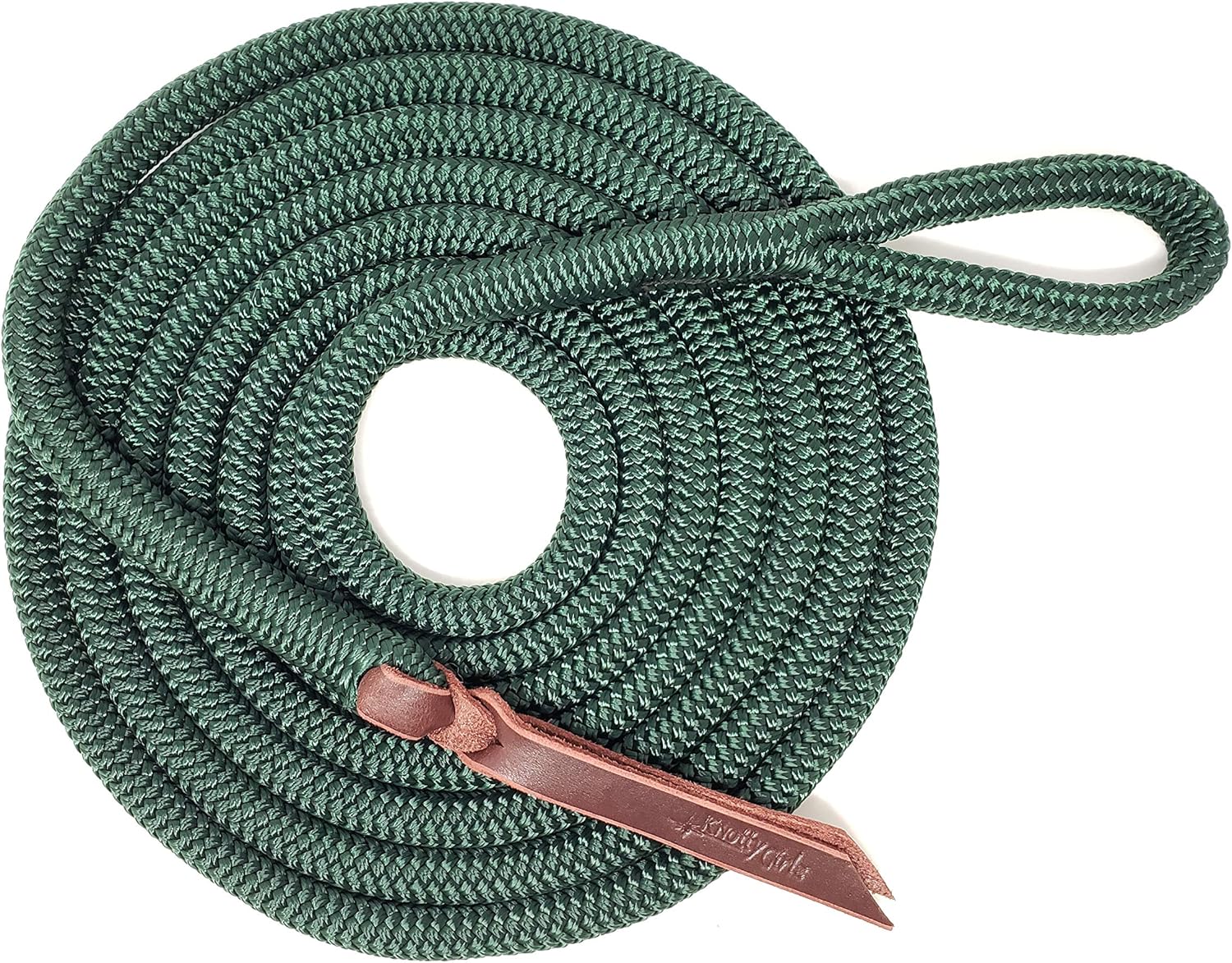 Double Braid Lead Rope with Eye Splice Loop, 12-14FT Lengths (Hunter Green, 14 ft.)