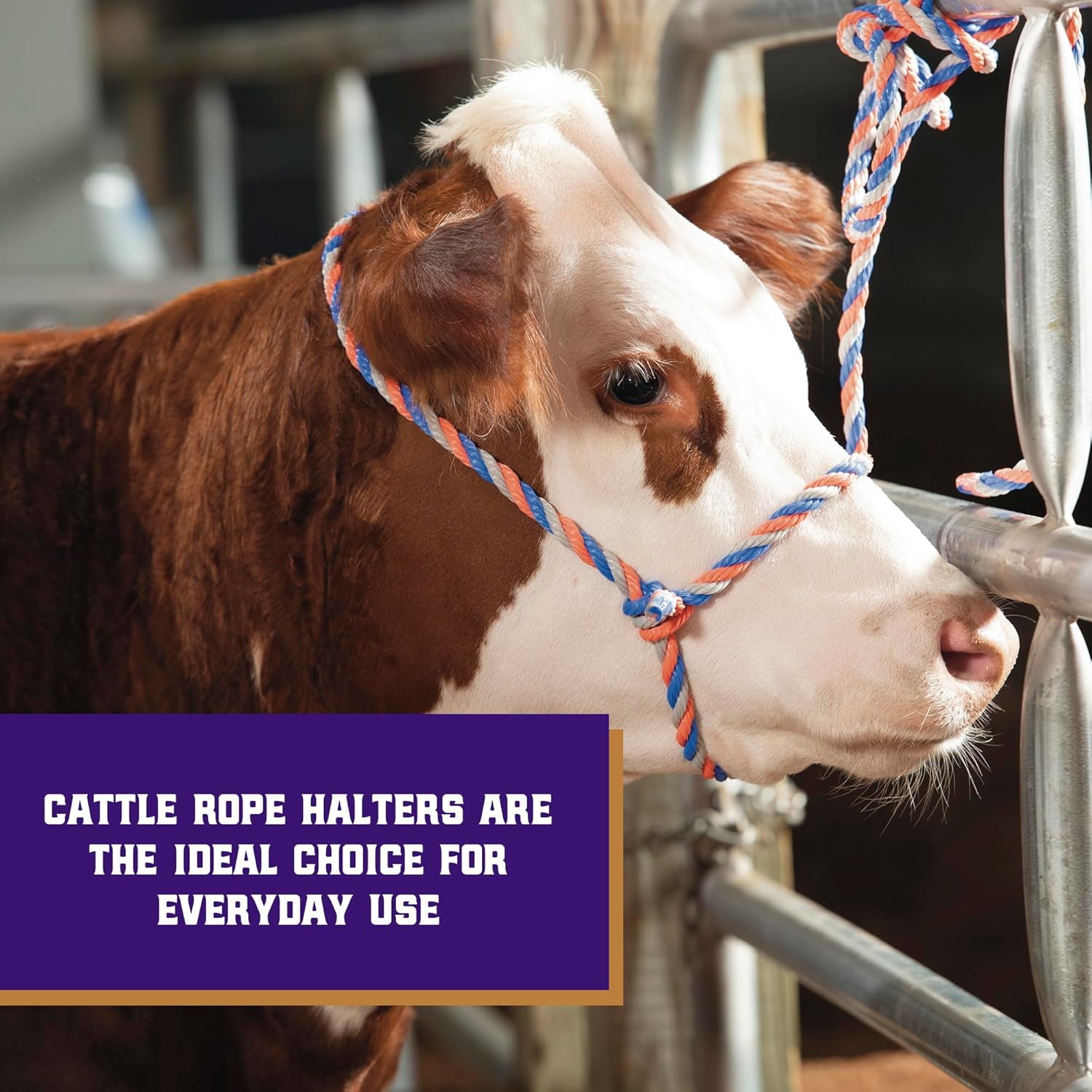 Weaver Livestock Braided Poly Rope Cattle Halter, Adjustable, Modern Style Cow Calf Halter, Livestock Handling Equipment for Showing, Blue/Coral/Gray
