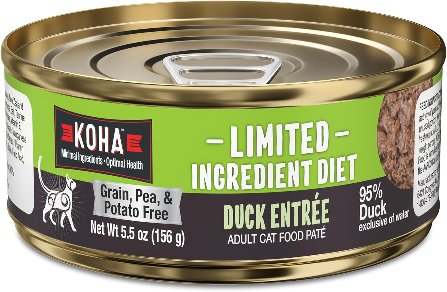 KOHA Limited Ingredient Diet Duck Pate for Cats - Single Meat Wet Cat Food for Sensitive Stomachs - Pate Cat Food with No Fillers - 5.5oz Pack of 24