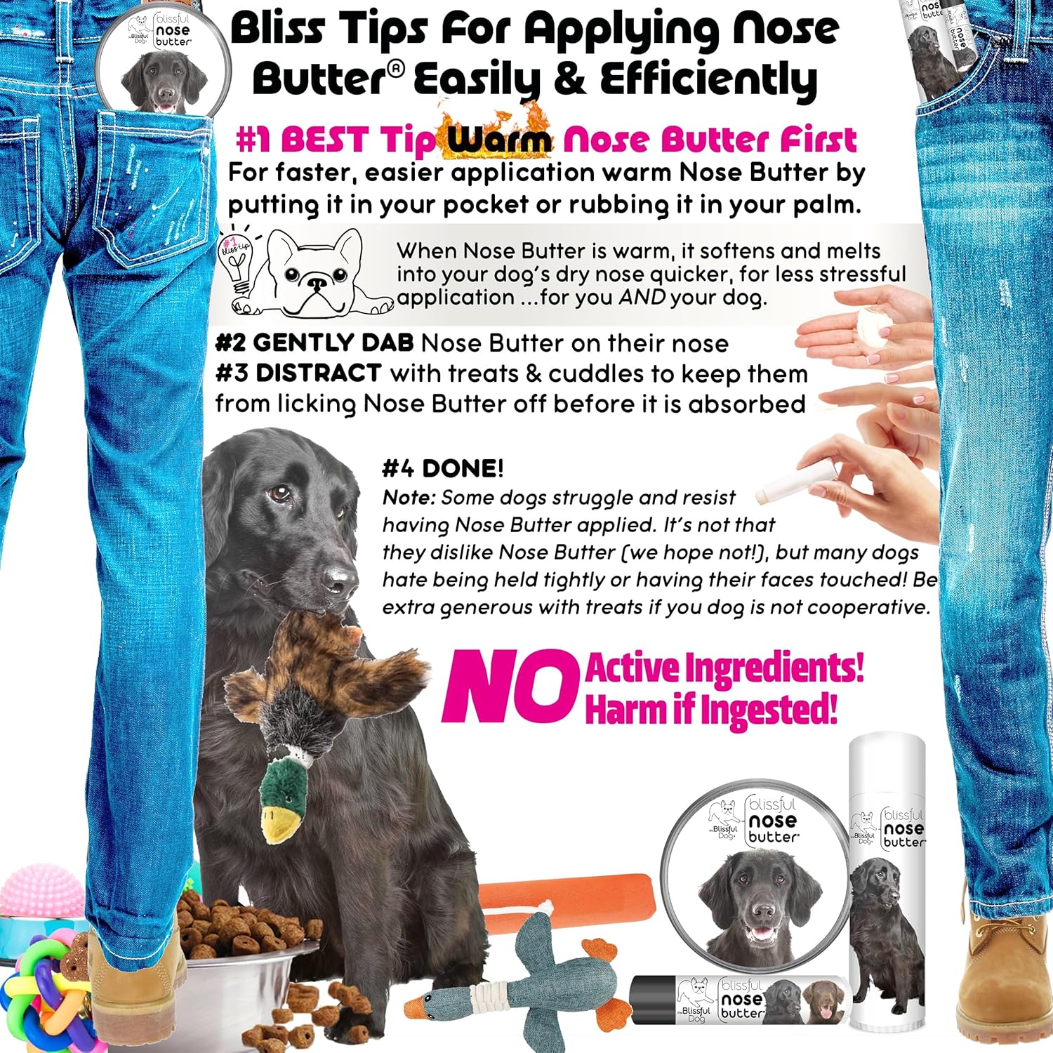 - Easy dog nose care - Easy to apply; Dab onto your dog's nose; that's it! Enriched with shea butter, this dog nose moisturizing butter brings relief to your dog’s dry nose. Non-toxic, no active ingredients, no harm if ingested