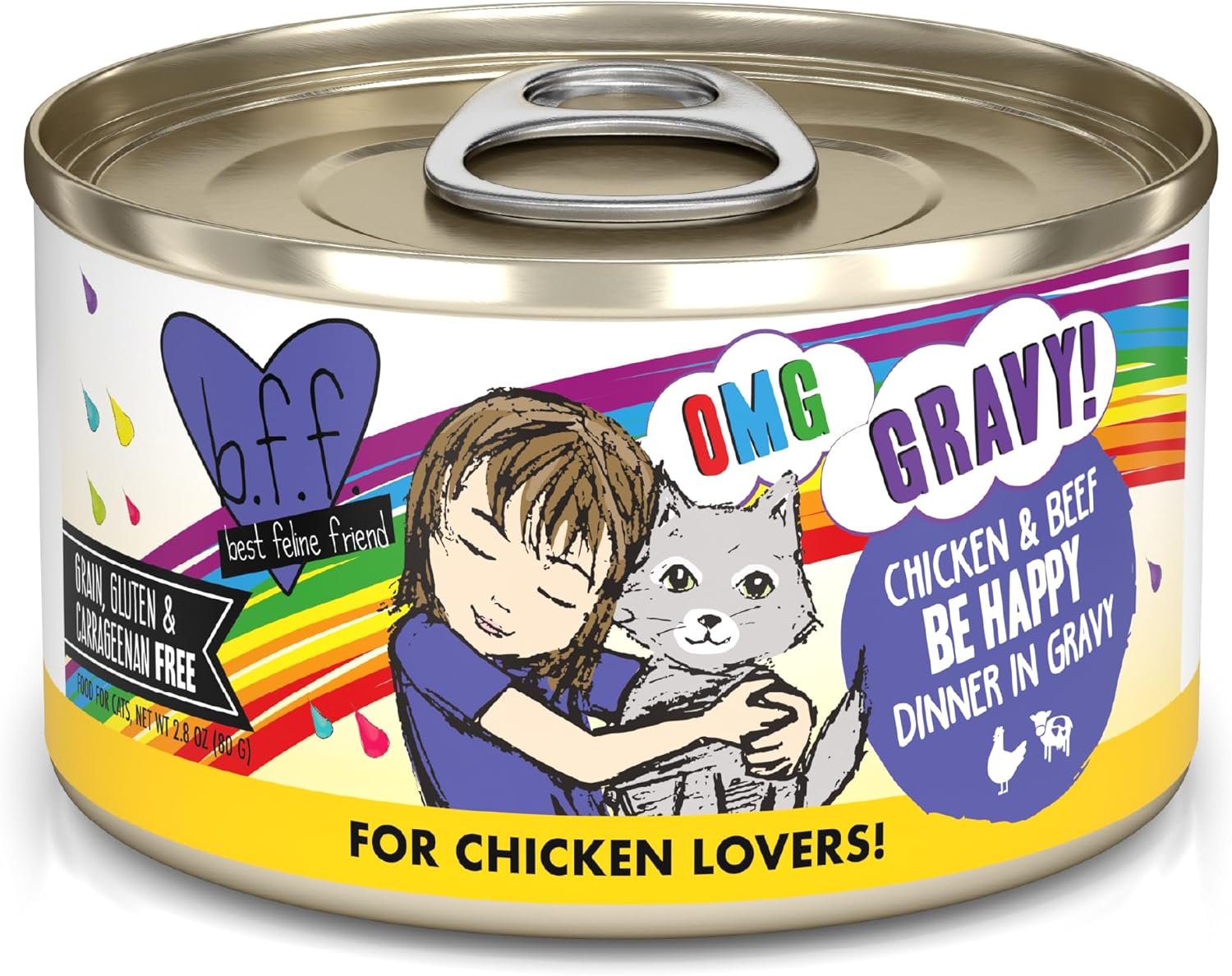 Weruva B.F.F. OMG - Best Feline Friend Oh My Gravy!, Chicken & Beef Be Happy with Chicken & Beef in Gravy, 2.8oz Can (Pack of 12)