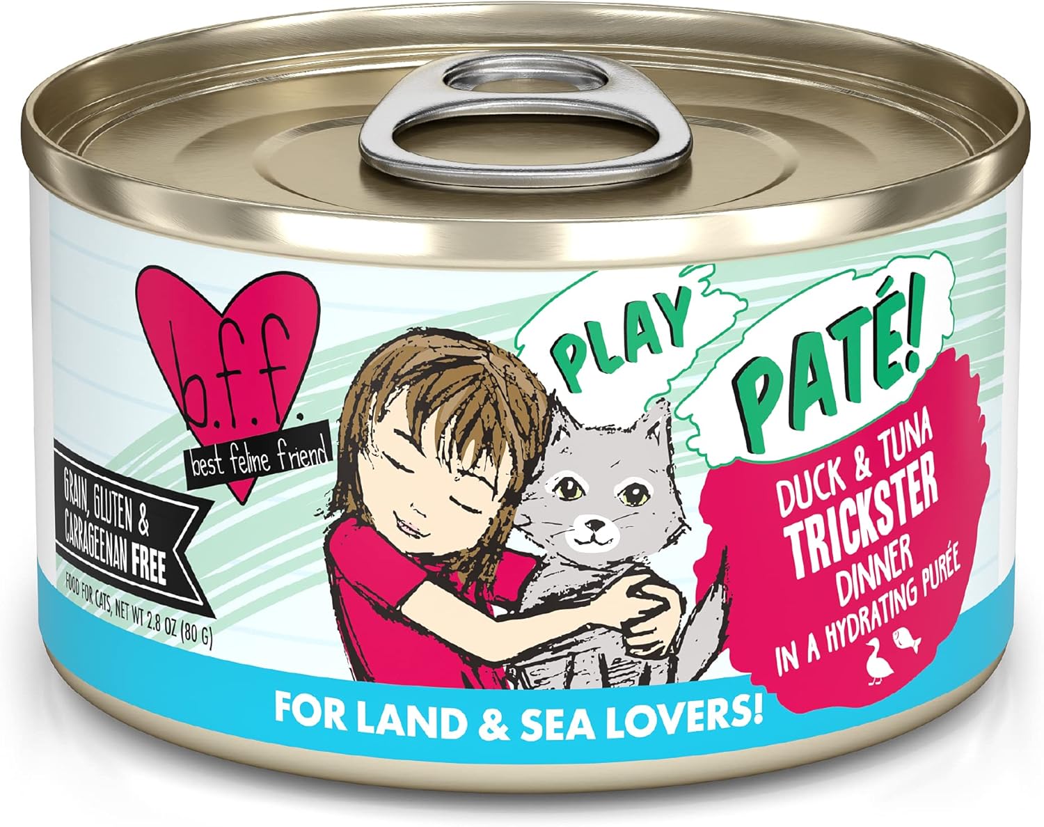 Weruva B.F.F. Play - Best Feline Friend Paté Lovers, Aw Yeah!, Duck & Tuna Trickster with Duck & Tuna, 2.8oz Can (Pack of 12)