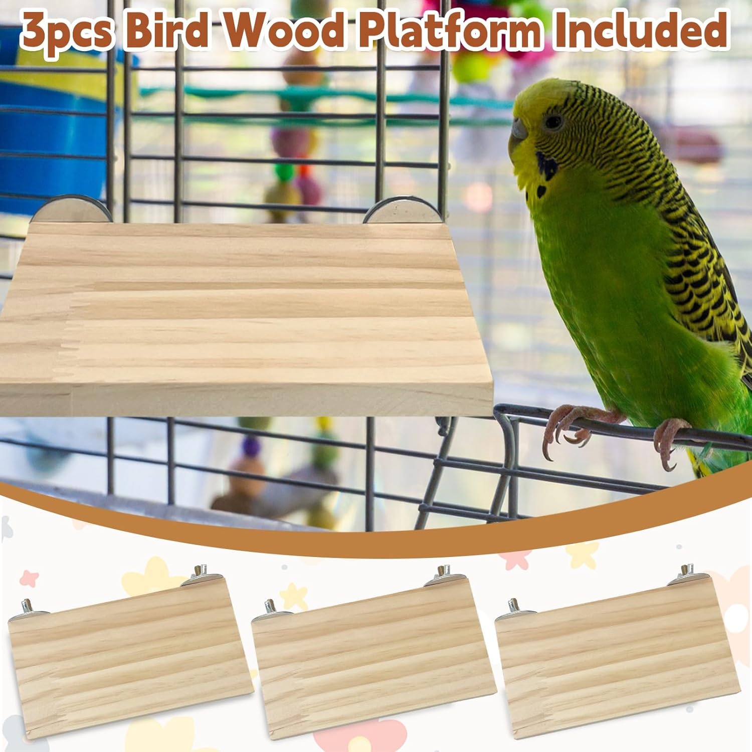 kathson Bird Wood Platform Parrot Perch Stand Parakeet Playground Cage Corner Shelf for Conures Budgies Parakeets Cockatiels Lovebirds 3Pcs