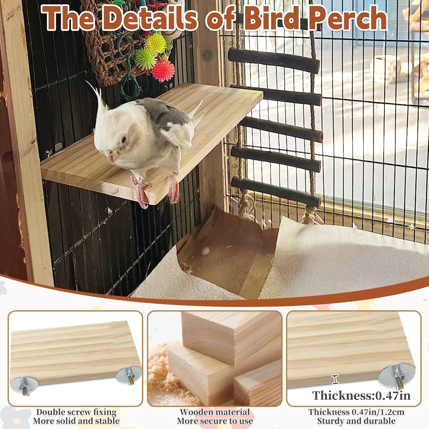 - NATURAL AND SAFE: The rough surface of the bird's perch is made of natural quartz sand and pure natural wood, safe for your pets to rest and play on