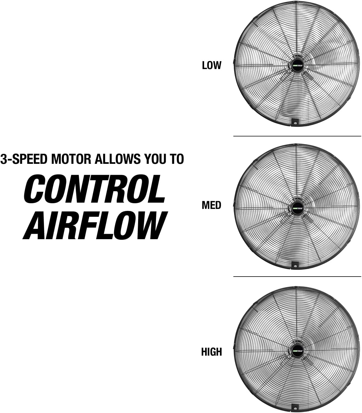- Durable Design: Wall-mounted fans constructed with 3 heavy-duty aluminum blades and a high-efficiency motor, this utility fan is built for long-term performance. Wall mount fans sturdy design withstands heavy use in demanding commercial and industrial settings.